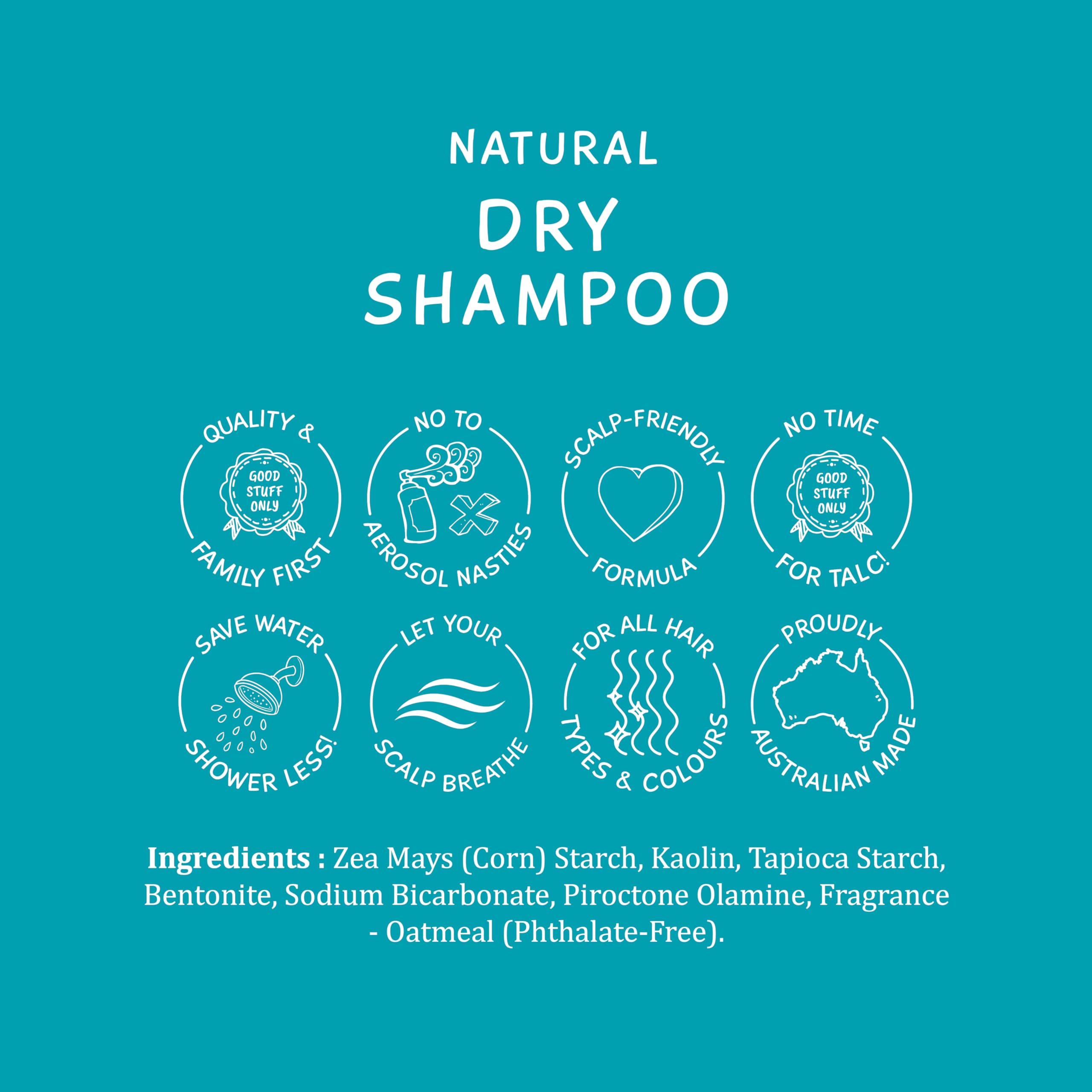 This natural Dry Shampoo is your new hair hero, keeping your locks clean, voluminous and refreshed between washes. The best part? All without Talc, Aerosol and other harsh chemicals or sticky build-ups.